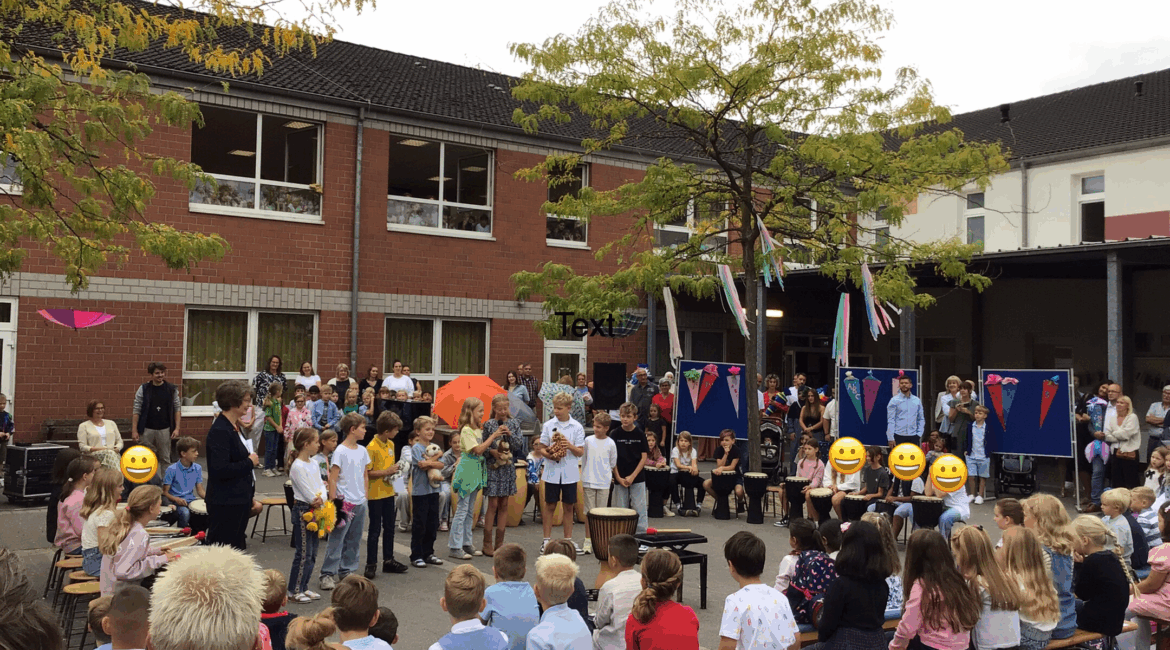 Der Auftakt machte ein feierlicher Gottesdienst. Anschließend hieß Schulleiterin Frau Specker-Mattißen alle Schülerinnen und Schüler sowie ihre Familien herzlich willkommen. Auch die Klassenvertreter kamen zu Wort, und stellten den Erstklässlern die verschiedenen Klassentiere vor. Danach sorgten die Viertklässler der Trommel-AG für musikalische Unterhaltung. Aber auch die zweiten Klassen sorgten mit Gesang und Tanz für Begeisterung.