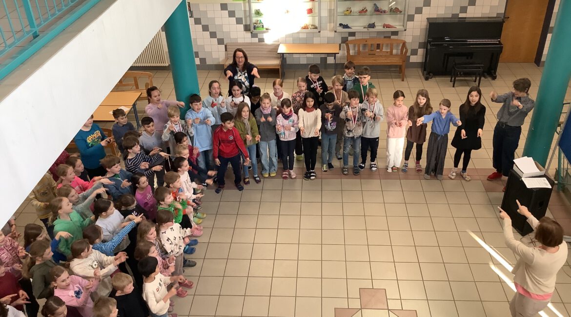 Großen Einsatz zeigten unsere Viertklässler beim diesjährigen MEG Cup, den die 4a mit Platz 3 und die 4b mit dem vierten Platz abschließen konnten. Es war bis zum Schluss spannend, denn erst ein Elfmeterschießen brachte die Entscheidung für die beiden Klassen, die gegeneinander antreten mussten. Somit durften sie alle bei der Siegerehrung am Freitag sehr stolz auf ihre fußballerische Leistung sein.