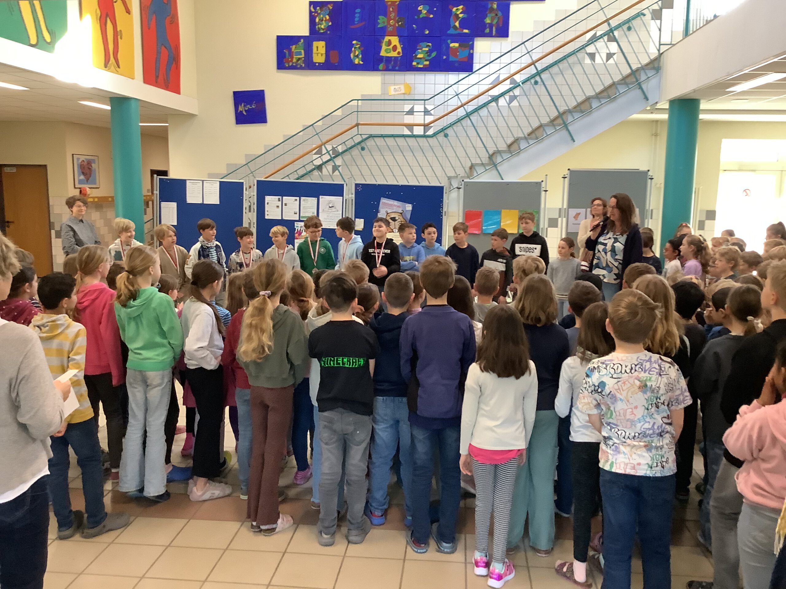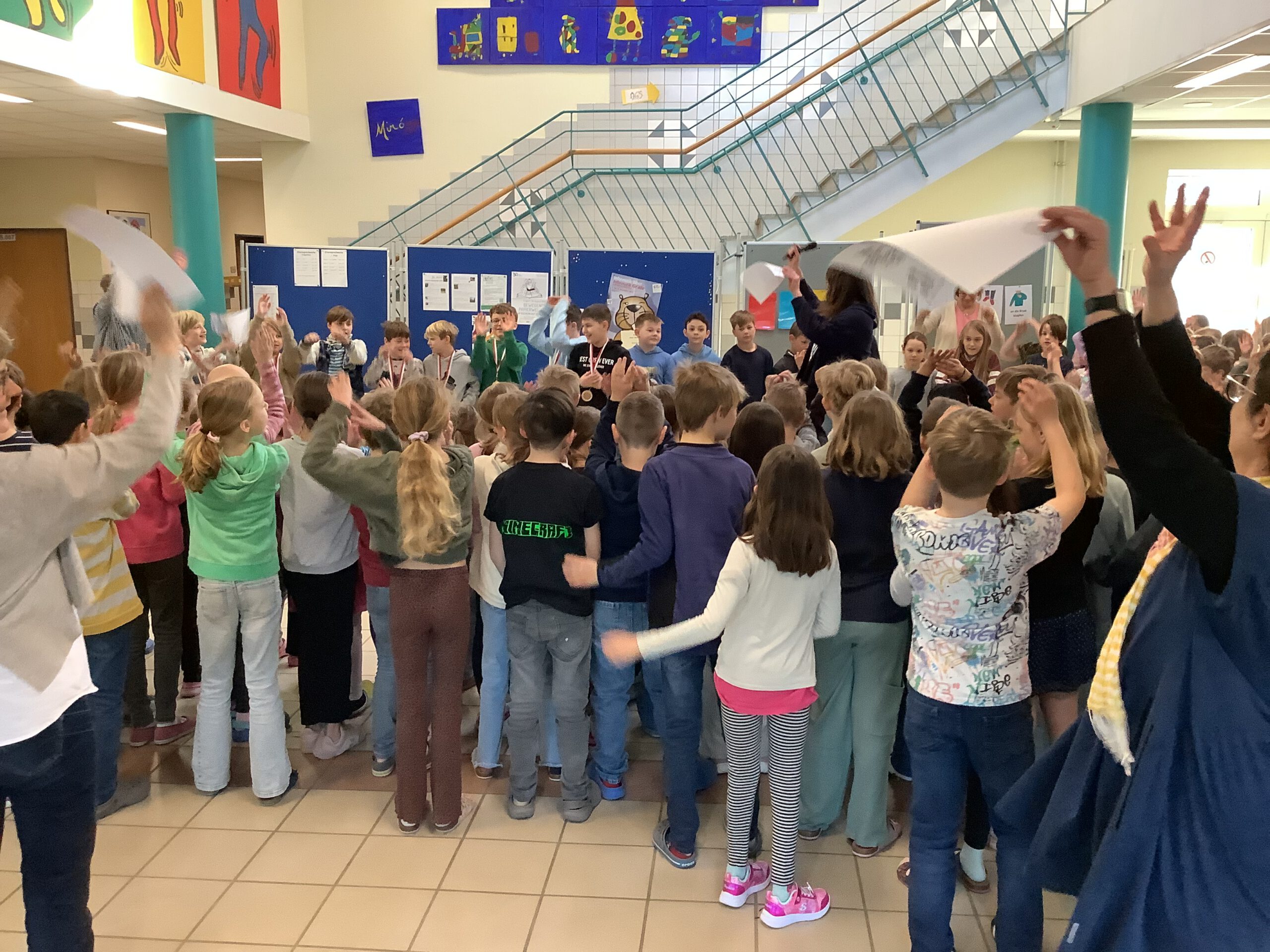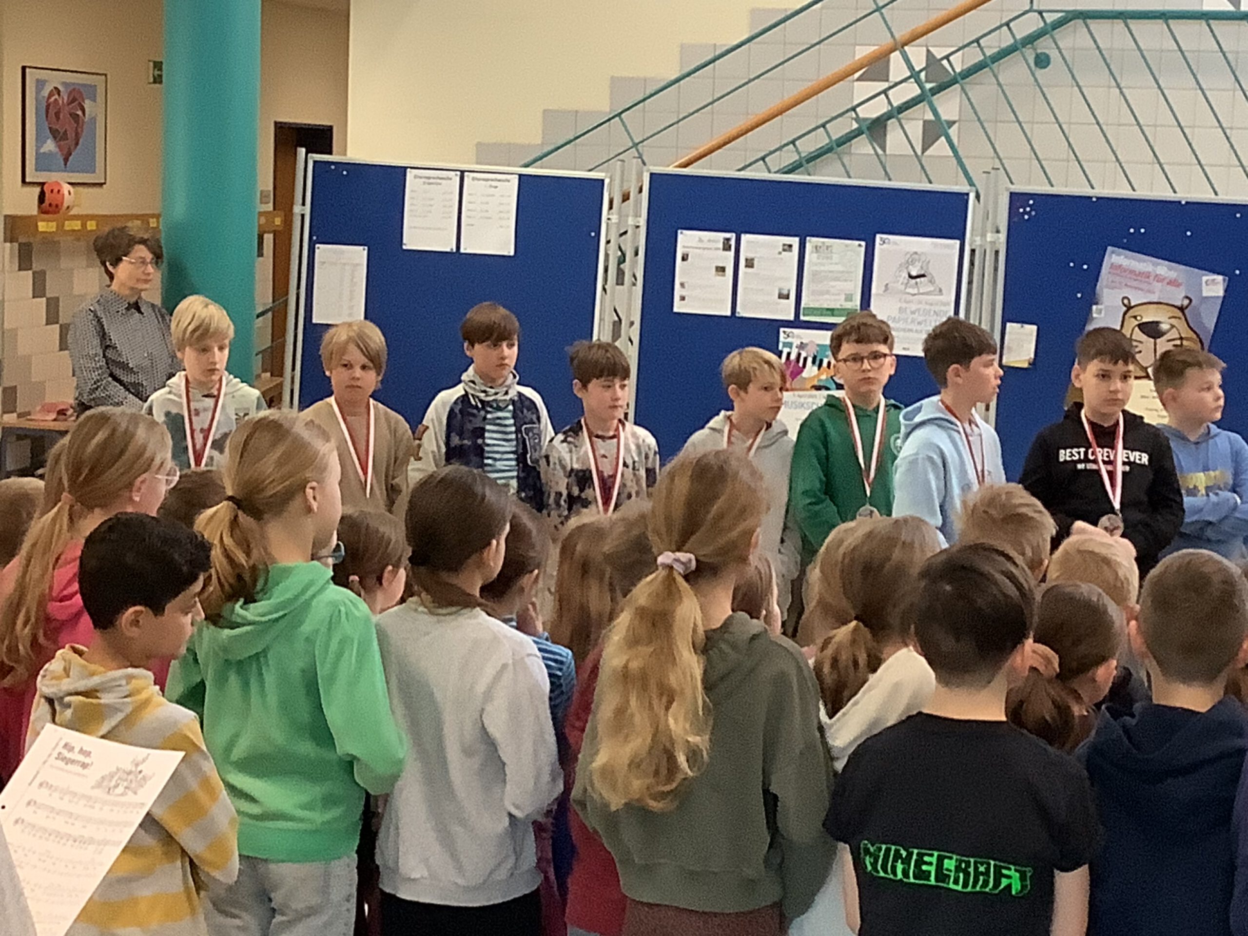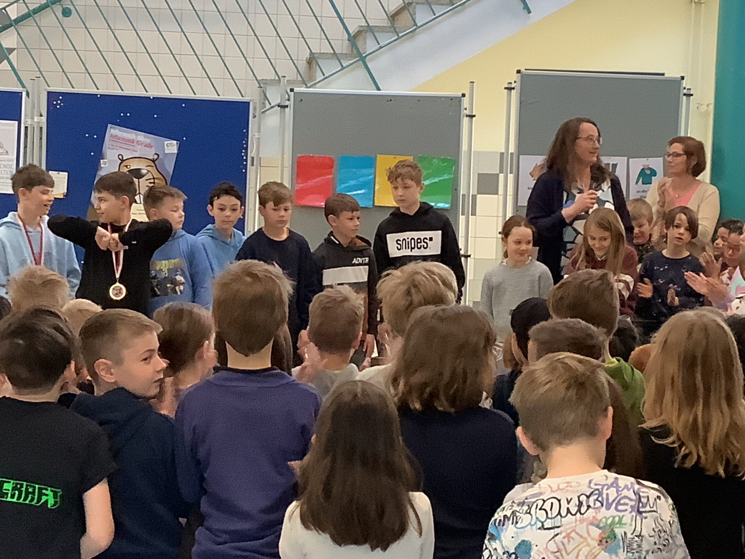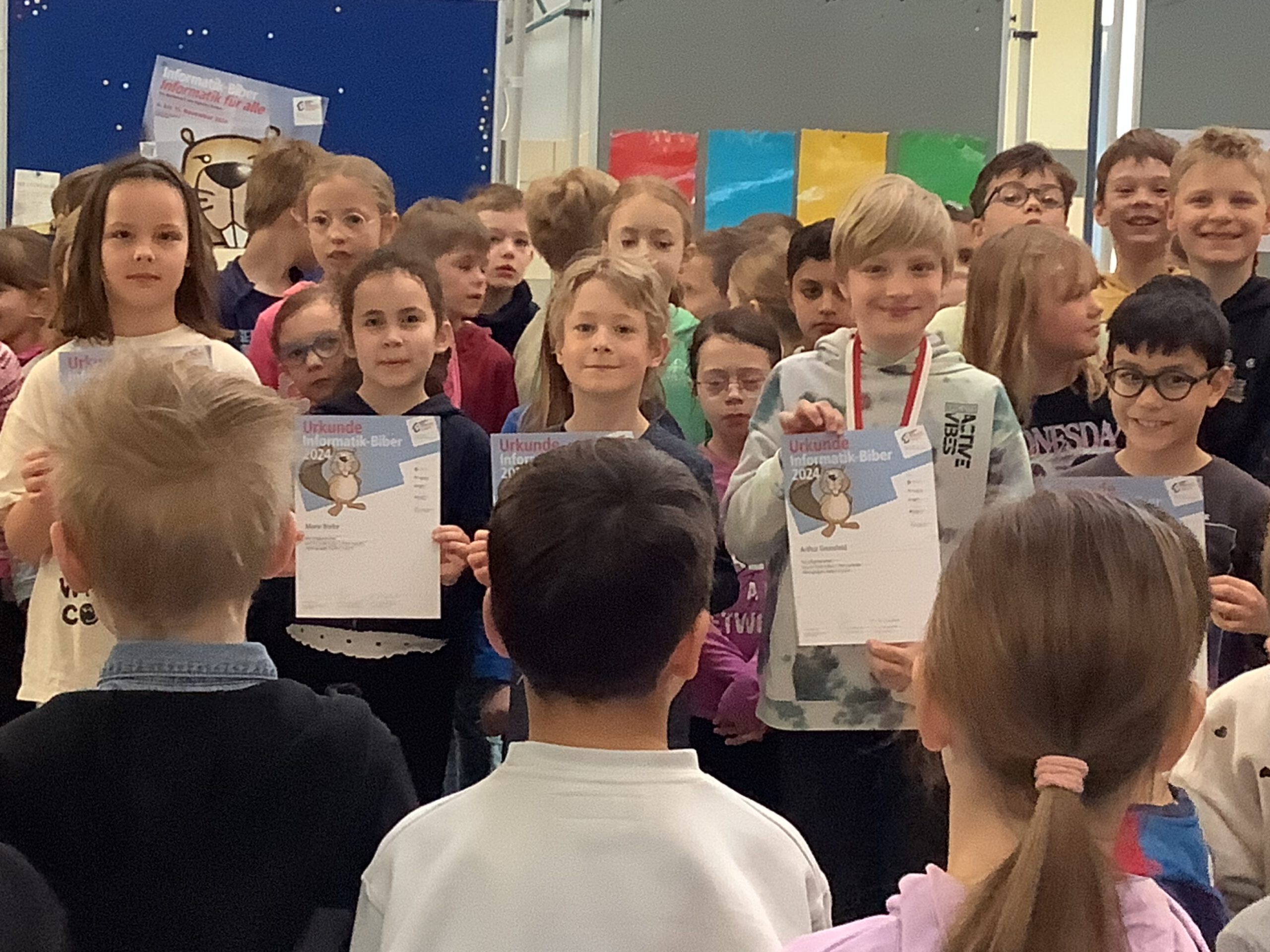 Am selben Tag wurden auch die Kinder geehrt, die im November den Informatik-Biber besonders erfolgreich abgeschlossen hatten. Dies ist der größte bundesweite Wettbewerb im Bereich Informatik. Hier muss man intensiv knobeln… Herzlichen Glückwunsch! Schön, dass ihr teilgenommen habt!