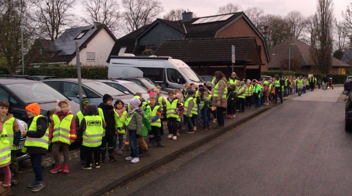 Auch in diesem Jahr verwandelten sich unsere Schülerinnen und Schüler wieder in leuchtende Glühwürmchen. Mit Warnwesten, Reflektoren und allem, was sonst noch blinkt und leuchtet, erhellten die Kinder vom 1. bis zum 5. Dezember die Tönisvorster Straßen. Höhepunkt war unser Umzug am Mittwoch den 03. Dezember; dann ging es gemeinsam als Glühwürmchenschwarm zur KiTa Sankt Antonius, welche ebenfalls an der Aktion des Kreises Viersen teilnahm.