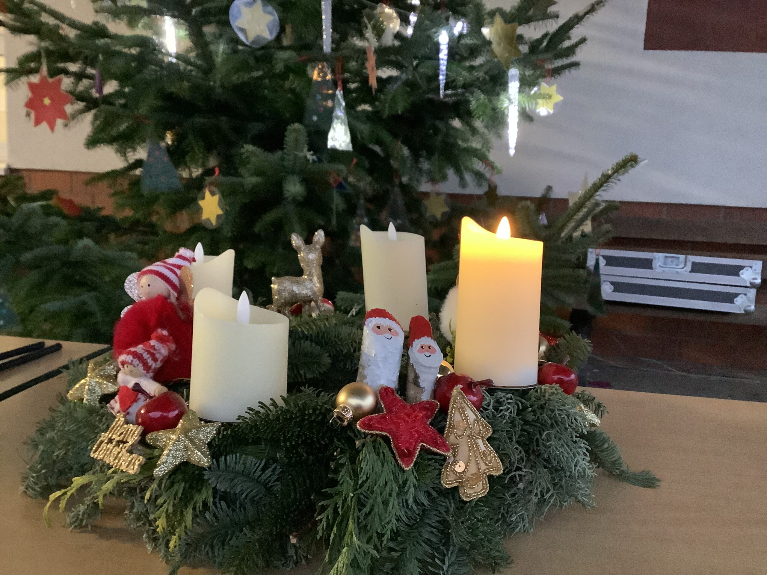 kommen wir, wie jedes Jahr, zusammen, um gemeinsam die Zeit vor Weihnachten einzuläuten und zu besingen. Da geht es um diese besondere Zeit, in der das Licht die Dunkelheit erhält, Weihnachtswichtel umhertappen oder der Nikolaus uns (vielleicht) in der Schule besuchen kommt… Am letzten Schultag treffen wir uns für einen schönen Abschluss zum gemeinsamen Weihnachtssingen neuer und alter Weihnachtslieder.