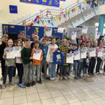 Auch unsere Fußballmannschaften der Klasse 4 wurden geehrt. Sie hatten mit großem Einsatz und viel Eifer für unsere Schule am MEG Cup teilgenommen. Auch wenn es diesmal nicht für die ersten Plätze reichte, hatten doch alle viel Spaß.