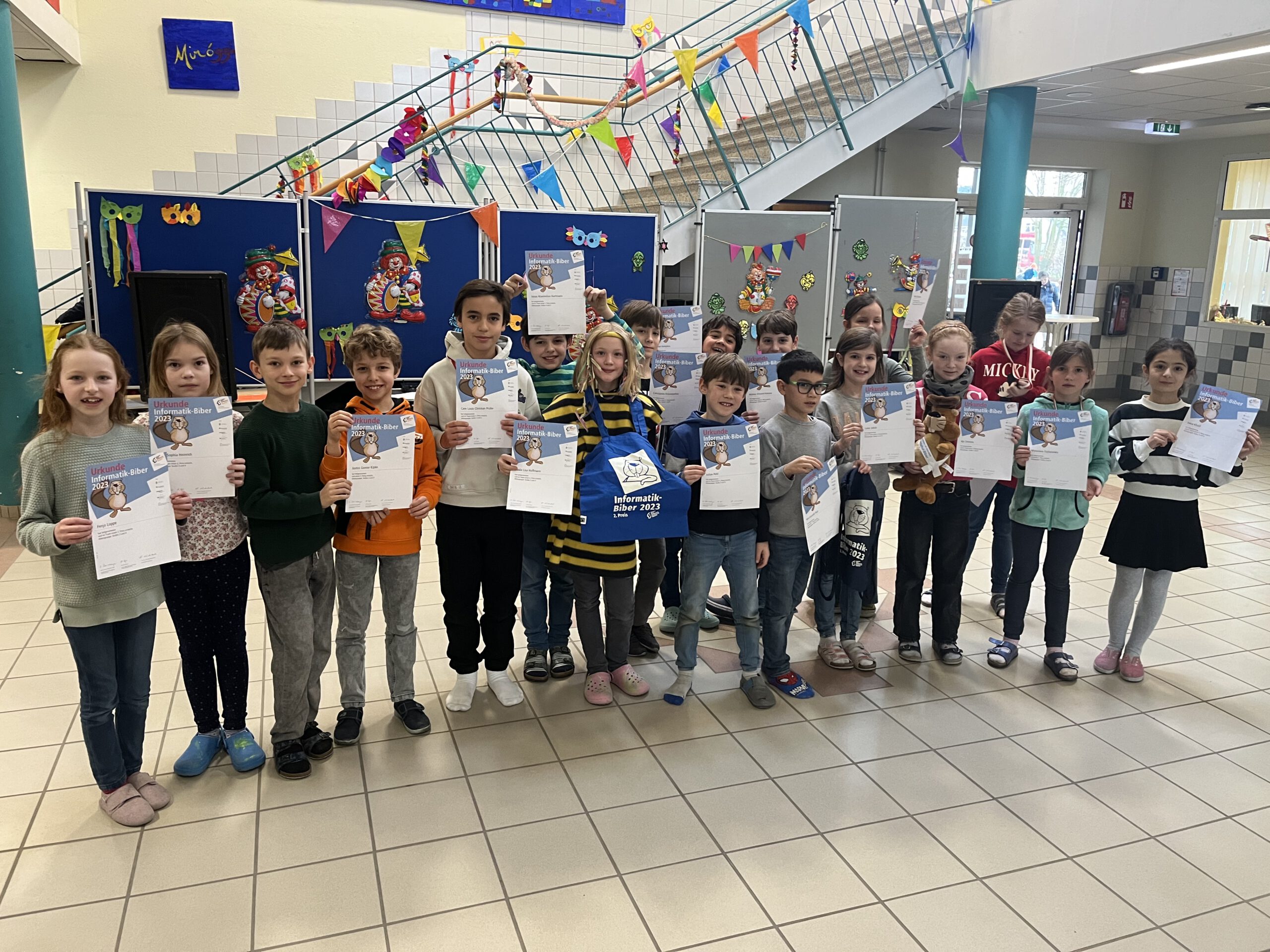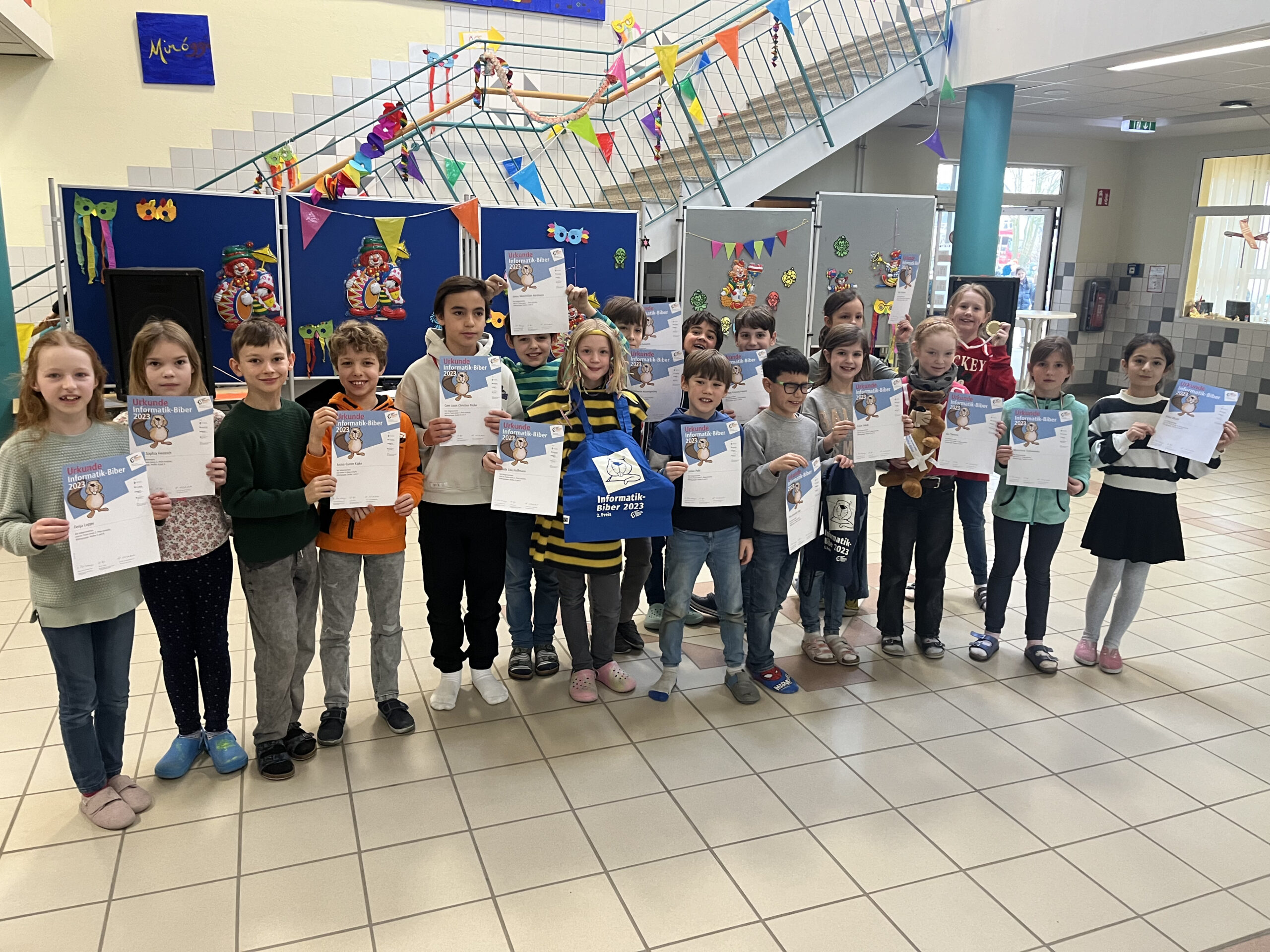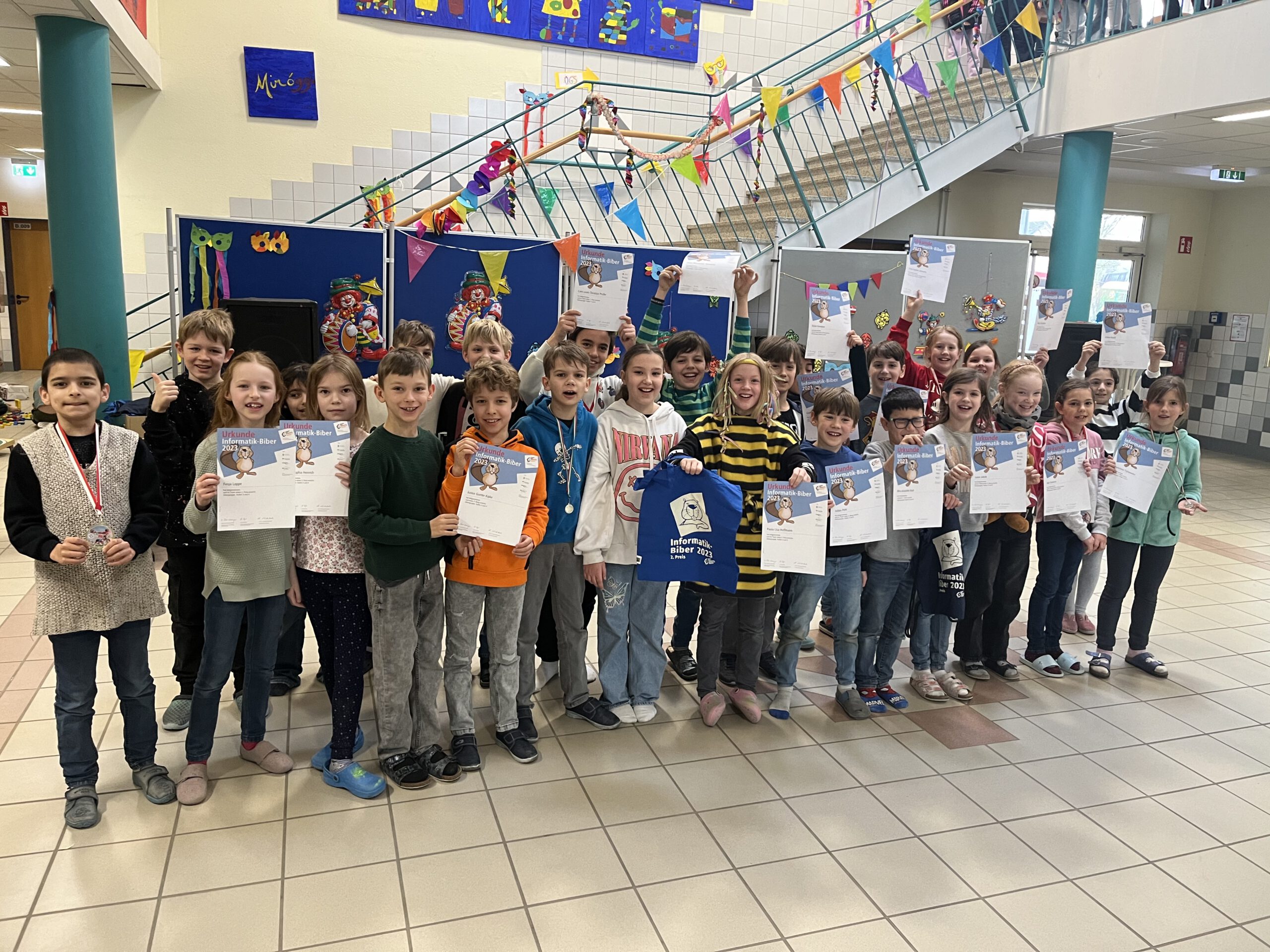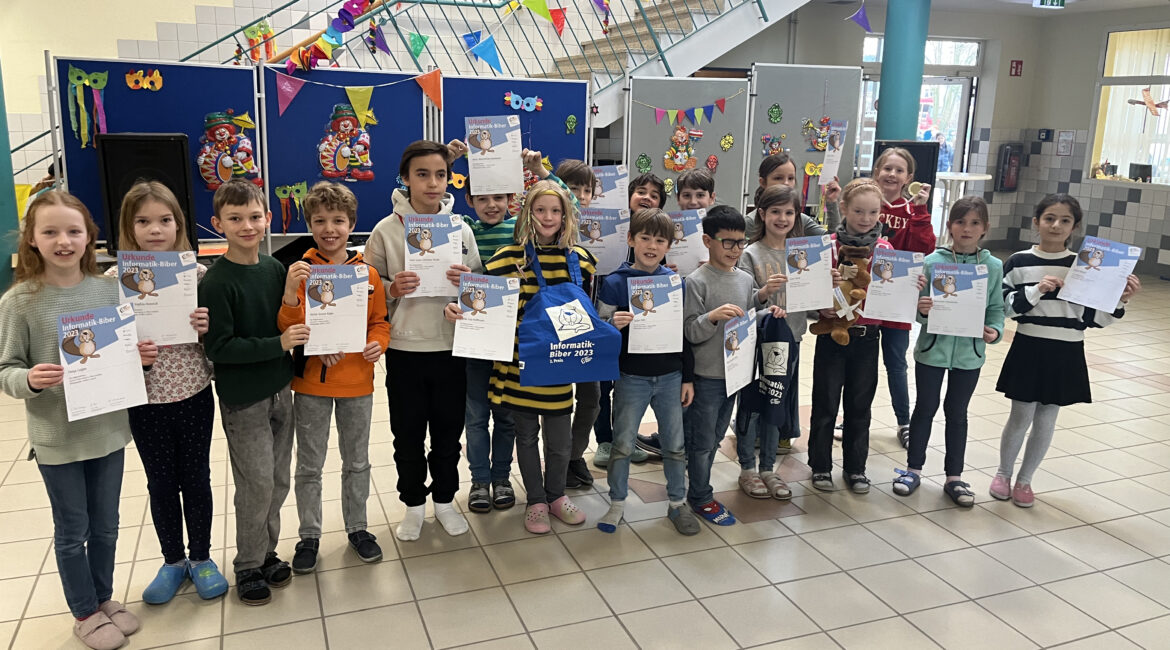 Die Biber waren wieder aktiv an der GGS Corneliusstraße! In diesem konkreten Fall handelt es sich nicht um die putzigen Nagetiere, sondern um die Informatik Biber. Bereits zum 3. Mal haben Schülerinnen und Schüler der 3. und 4. Klassen der GGS Corneliusstraße am Informatik Biber erfolgreich teilgenommen. Diesmal waren 71 Kinder dabei und es gab viele 1., 2. und 3. Plätze, die die Kinder sich mit viel Knobelei und Tüfteln erarbeitet haben. Herzlichen Glückwunsch!