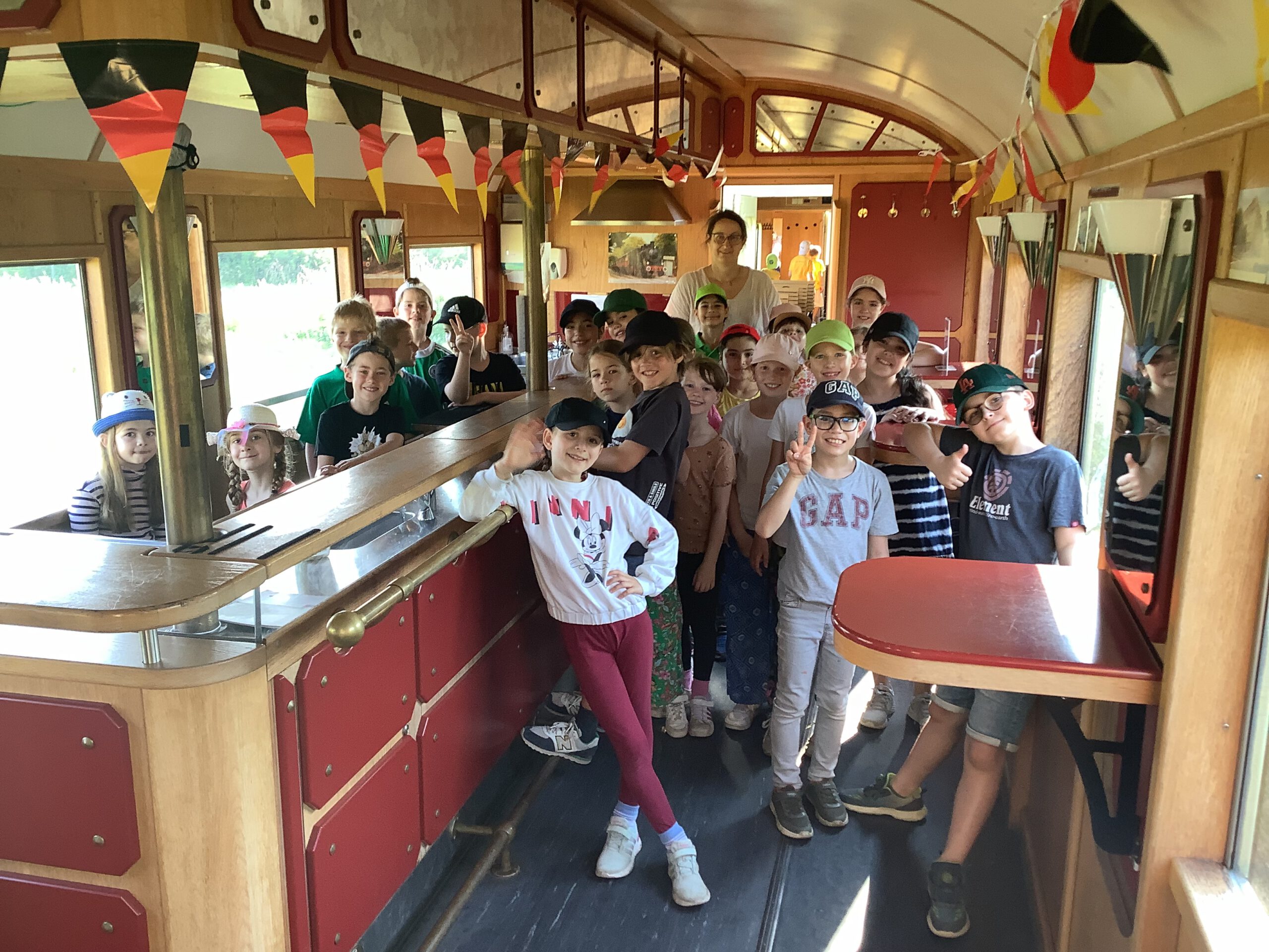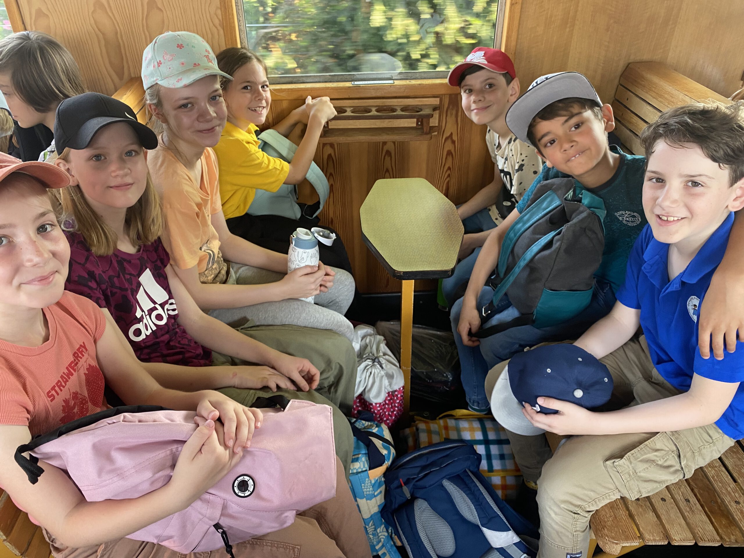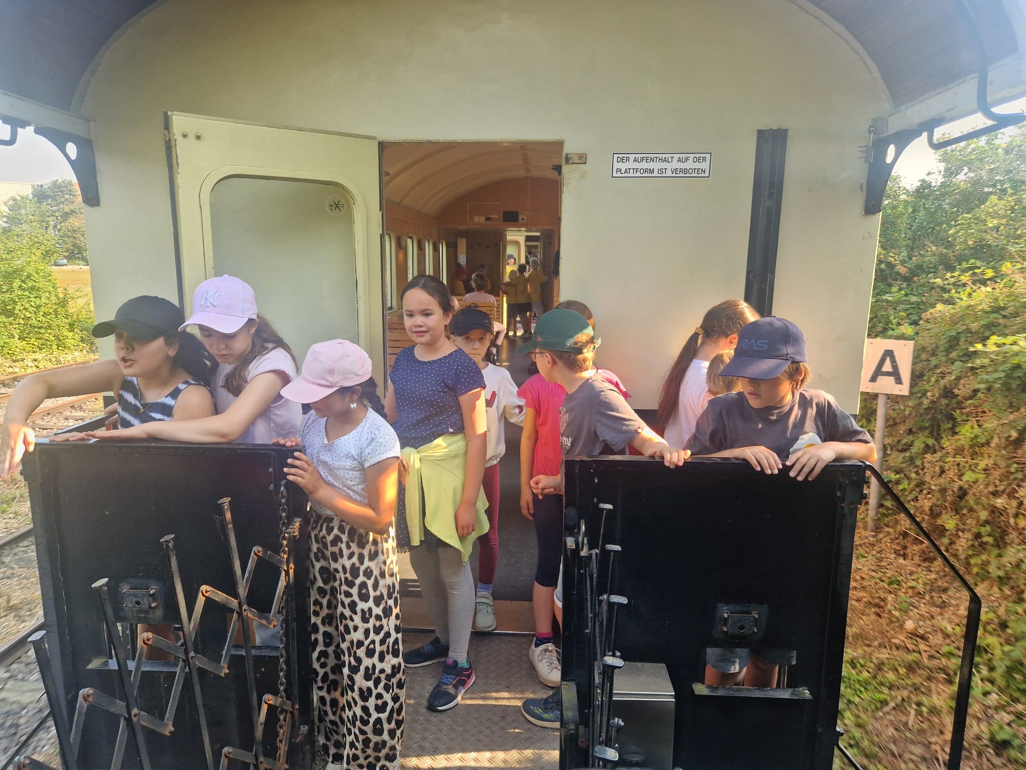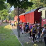 Bei warmem und herrlichem Wetter fand am Donnerstag, den 27.06. unser großer, lang vorbereiteter Schulausflug statt. Ein ganzer Zug voller Kinder, das  sorgte auch bei vielen Passanten am Wegesrand für Aufmerksamkeit. Sie winkten lachend zurück. Die Zugbegleiter waren extrem auskunftsfreundlich, so dass wir viel über den Schluff erfahren konnten.