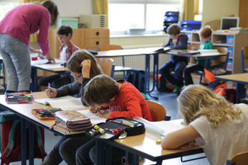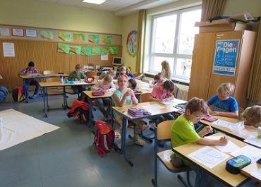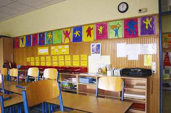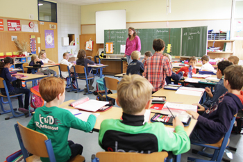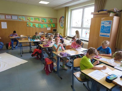 Im Obergeschoss befinden sich die Klassenräume der 3. und 4. Jahrgänge. Es gibt außerdem einen Computerraum mit 24 Arbeitsplätzen. In diesem Raum ist auch unsere Schülerbücherei untergebracht. Die Räume der OGS befinden sich ebenfalls auf dieser Etage.