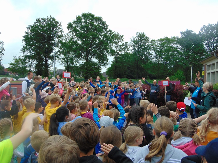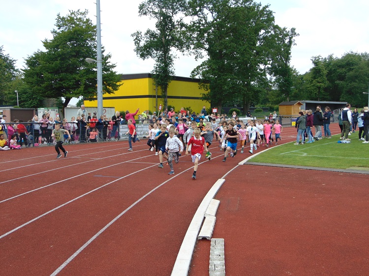 Etwas kälter als erwartet war es in diesem Jahr an unserem Spiel- und Sportfest. Trotzdem hatte die Schulgemeinschaft viel Spaß bei den Spiel- und Sportangeboten, die tatkräftig von vielen Eltern unterstützt wurden. Vielen Dank dafür! Zum Abschluss gab es wieder den gemeinsamen 800m Lauf der einzelnen Jahrgangsstufen, der begeistert von allen begleitet wurde. Schön war es!