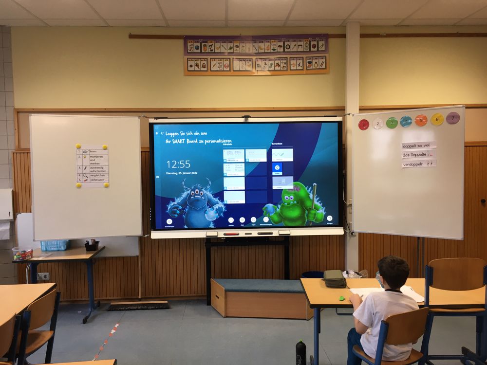 Die neuen großen Smartboards sind da! Nicht nur die Kinder sind begeistert, welche Möglichkeiten uns nun geboten werden. Um diese richtig nutzen zu können, nehmen wir uns am Mittwoch, den 26.01.2022 die Zeit für eine Fortbildung im Anschluss an den Unterricht.