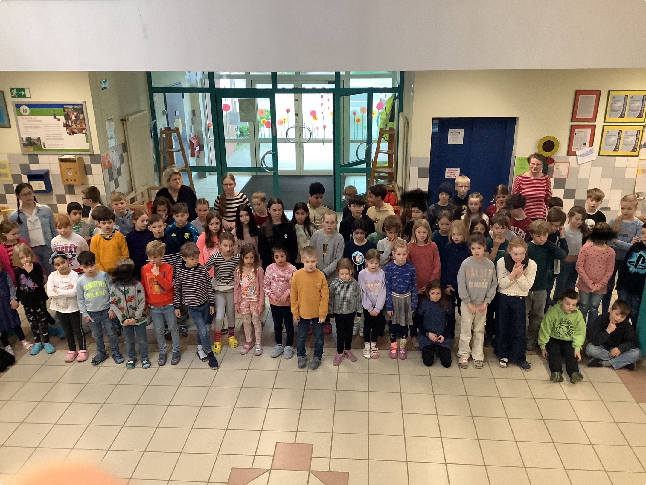 Deshalb traf sich die komplette Schulgemeinschaft schon morgens um 8:00 Uhr im Forum, um diesen besonderen Tag mit unserer „Schulhymne“ zu beginnen. Darin heißt es u.a.: „Ich bin anders als du bist anders … na und … Das macht das Leben eben bunt!“