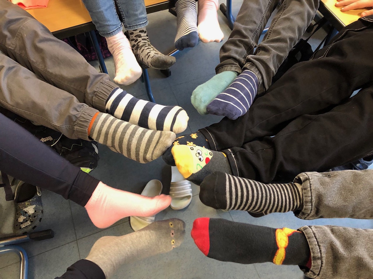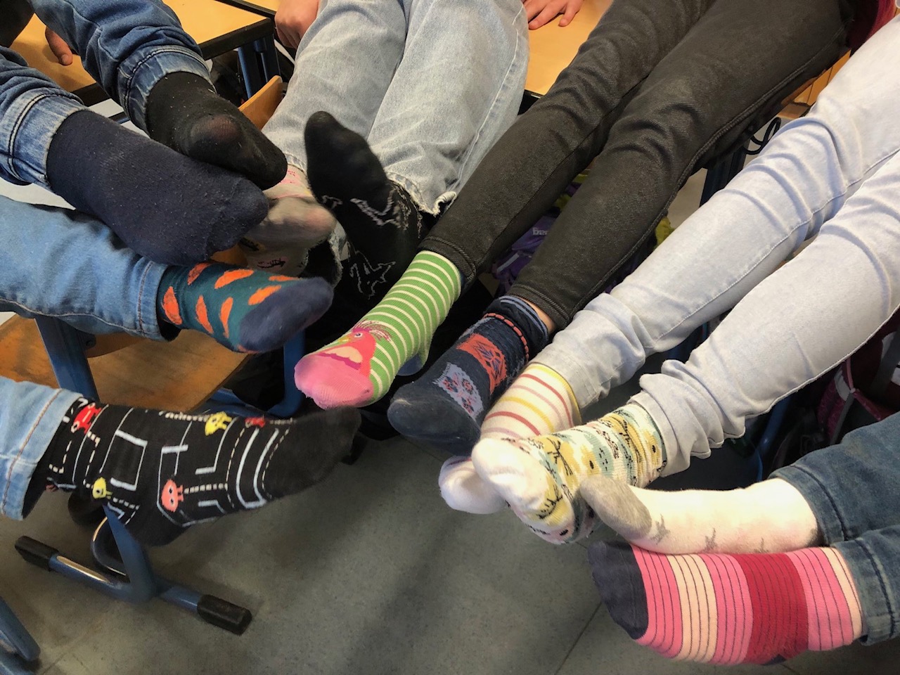 Zu diesem Tag gehört auch das Tragen unterschiedlicher Socken! Super, wie viele bei dieser Aktion mitgemacht haben! „Es ist normal, verschieden zu sein.“ Diese Worte hat einmal Richard von Weizäcker gesagt und sie sind unser Schulmotto.