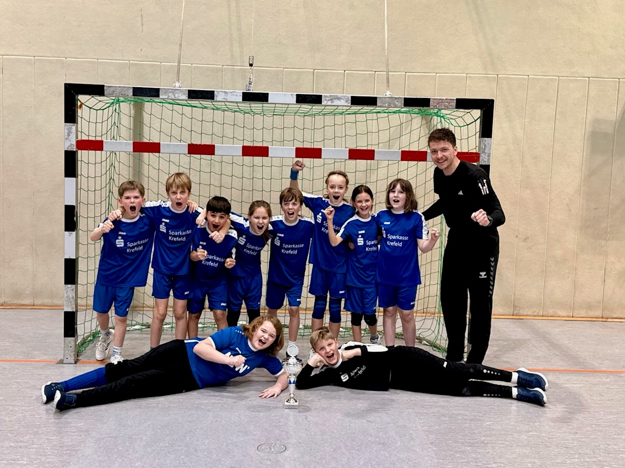 …und holen einen überragenden 2. Platz bei der mit 10 Mannschaften durchgeführten Kreismeisterschaft. Nach 4 Siegen aus 4 Spielen in der Vorrunde verlieren die Kinder der Corneliusstr. in wirklich toller Atmosphäre ein hauchdünnes Finale mit 7:5 gegen die Gastgeber aus Süchteln. Eine Minute vor Ende verpassten die Kids noch den Ausgleich, ehe Süchteln dann im letzten Angriff des Spiels das 7:5 Endergebnis markiert. Eine tolle Leistung von allen!